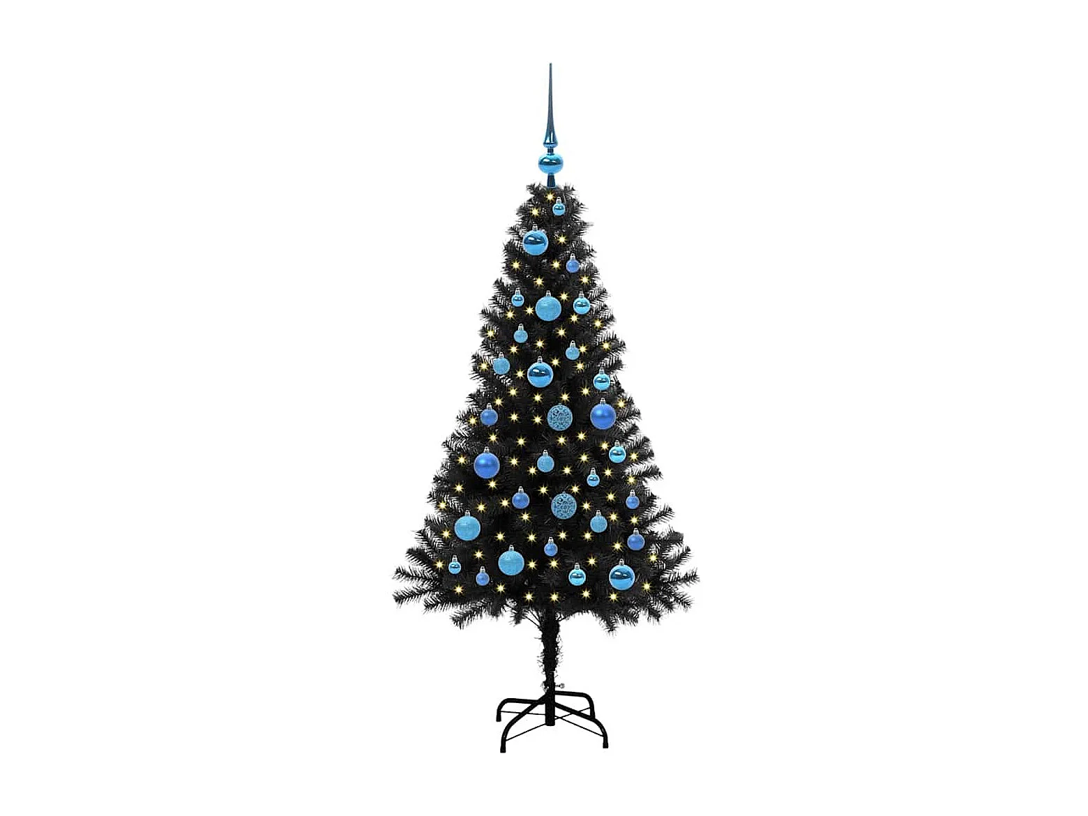 Künstlicher Weihnachtsbaum mit Beleuchtung, Schwarz, 150 cm, PVC