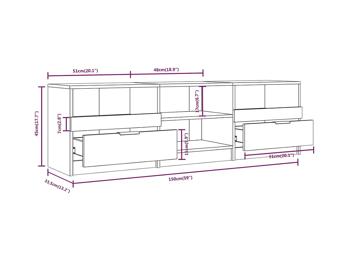 Weißer TV-Schrank 150x33,5x45 cm Holzwerkstoff