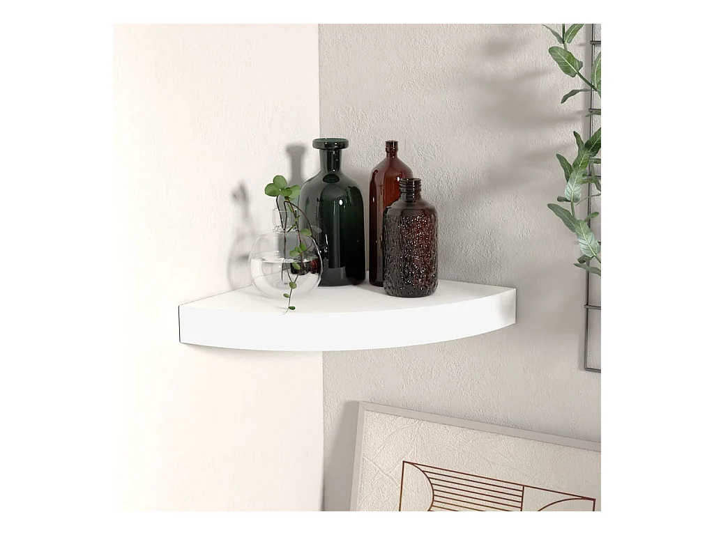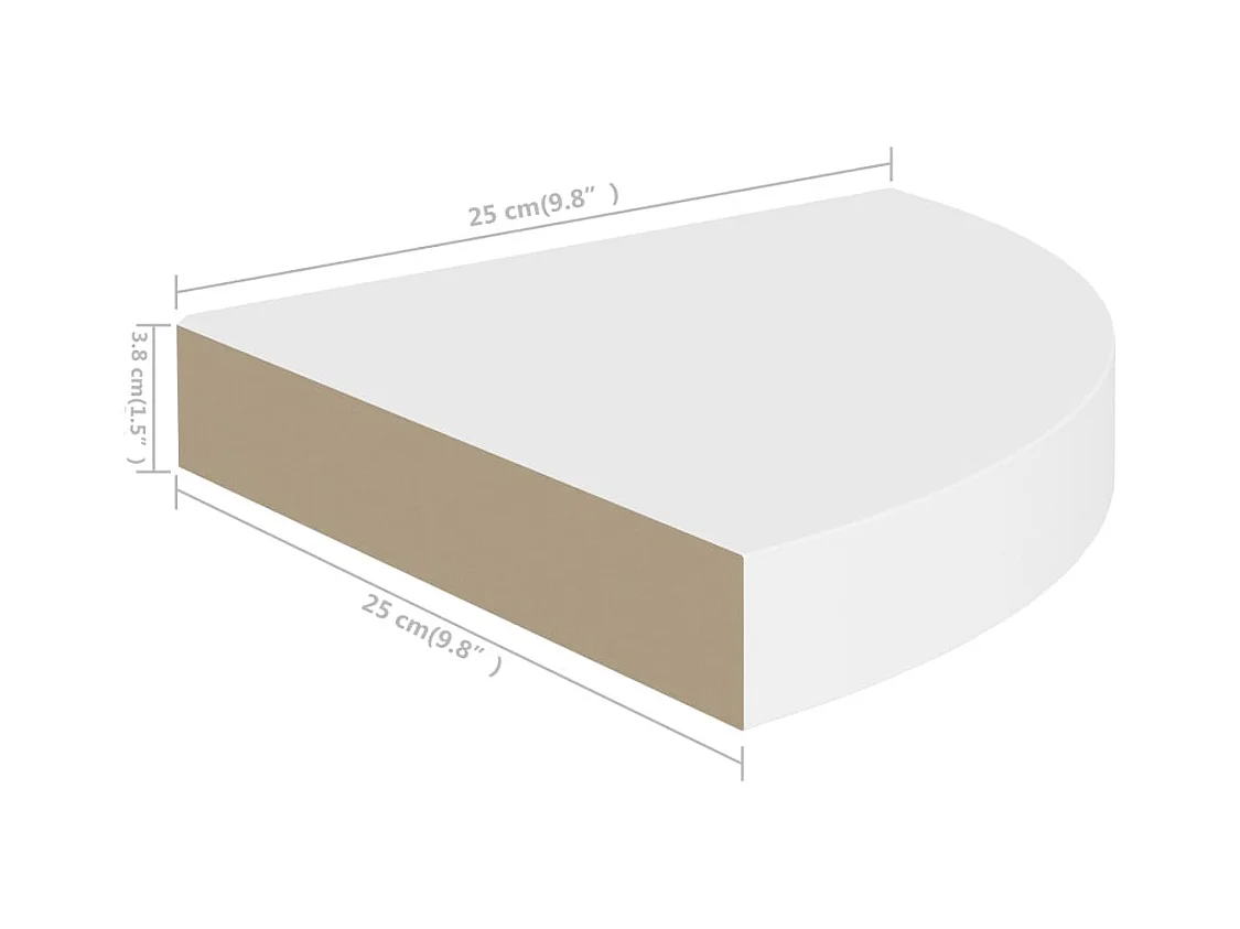 Weißes schwebendes Eckregal 25x25x3,8 cm MDF