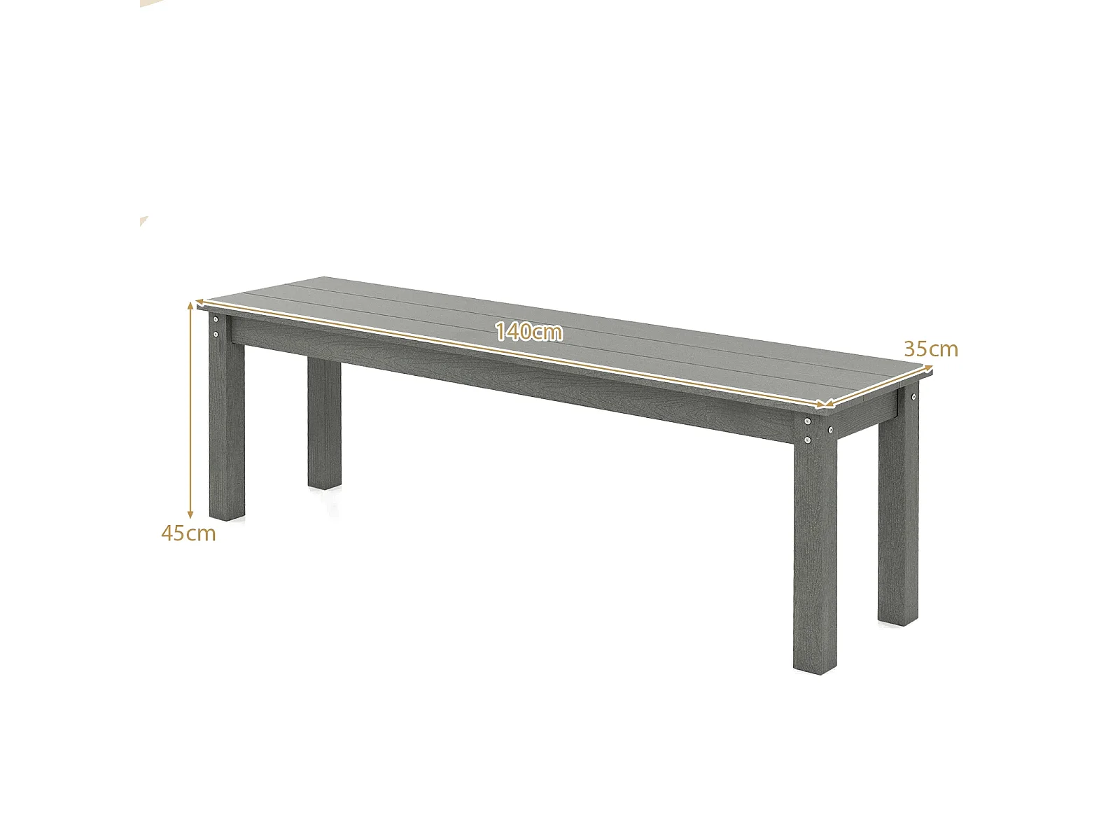 Wetterfestes Gartenbank 3-Sitzer Sitzbank Balkonbank ohne Lehne Terrassenbank Parkbank Grau