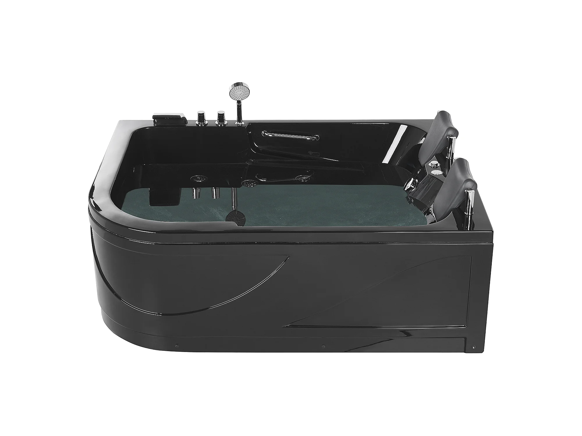 Schwarze Whirlwanne Badewanne mit LED-Beleuchtung SPA 170 x 119 cm links Bayamo