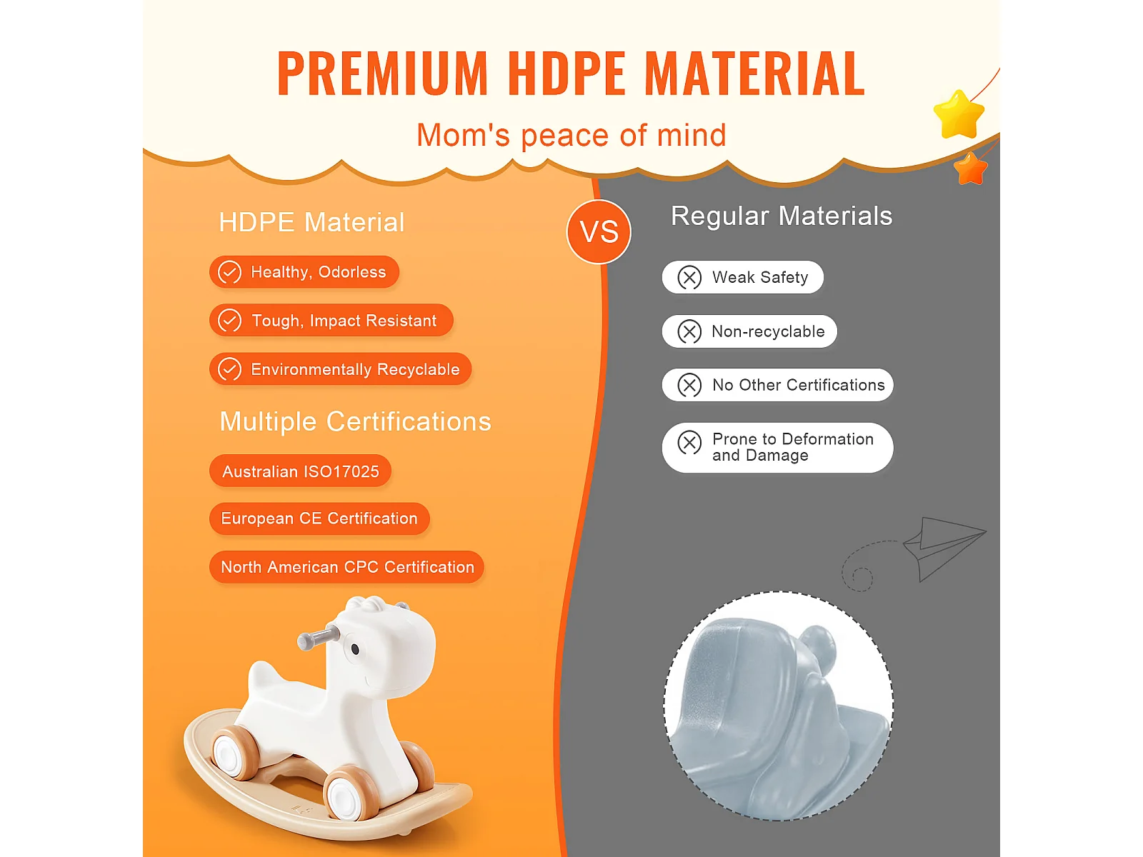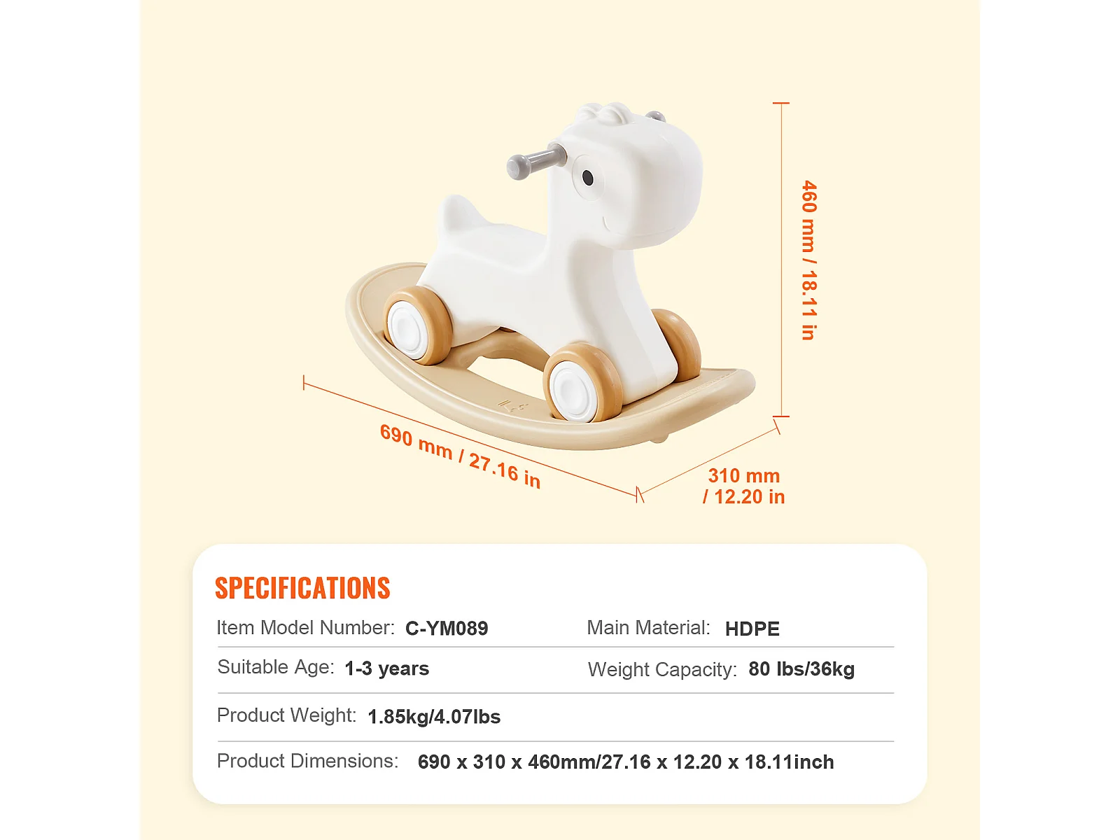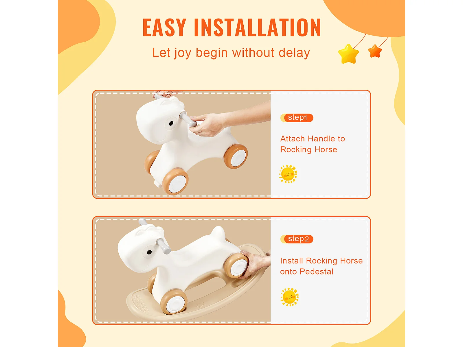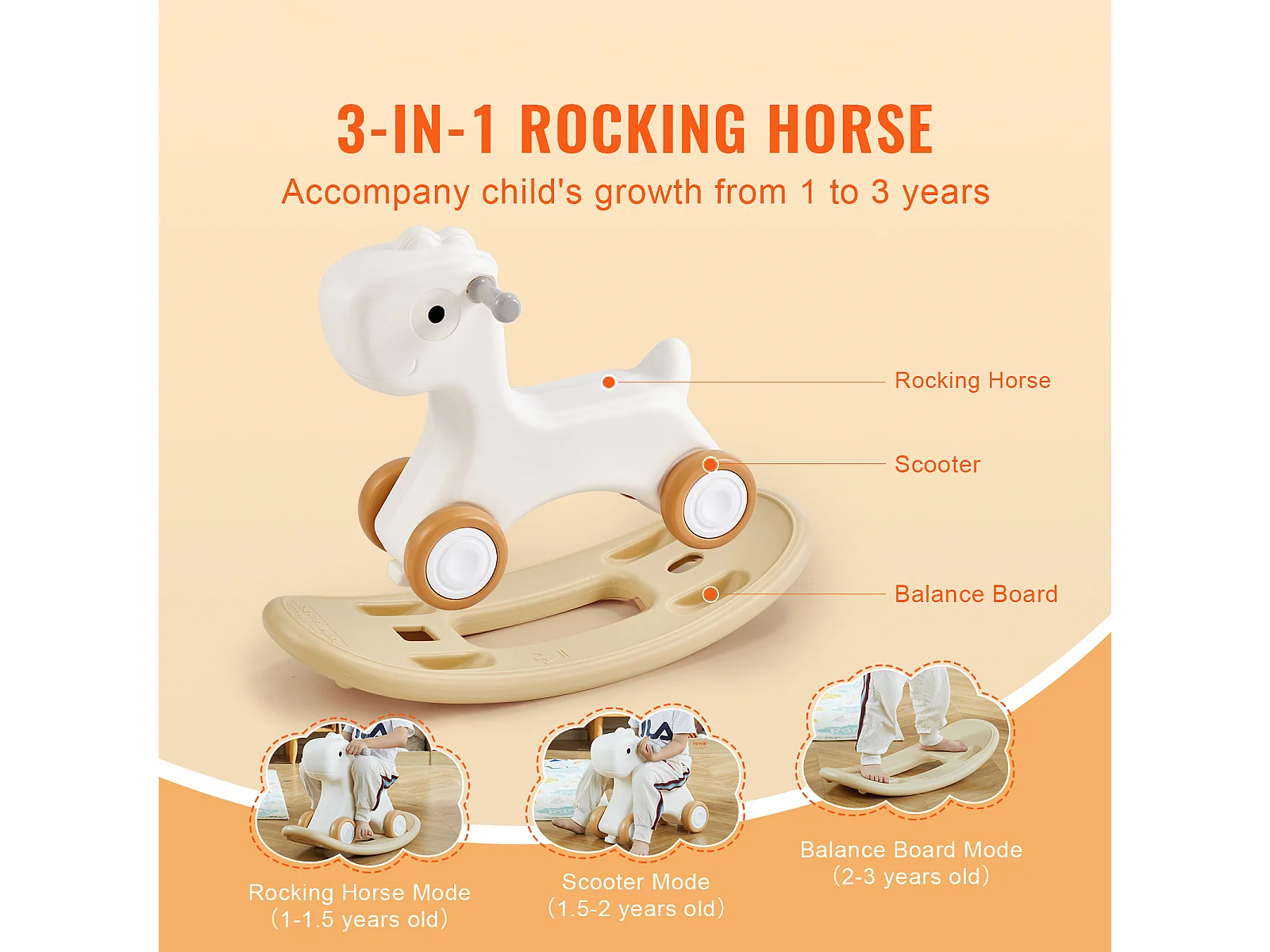 Wipppferd SucceBuy, 3-in-1 für Kleinkinder 1-3 Jahre, Reit- und Brettvariante, Weiß