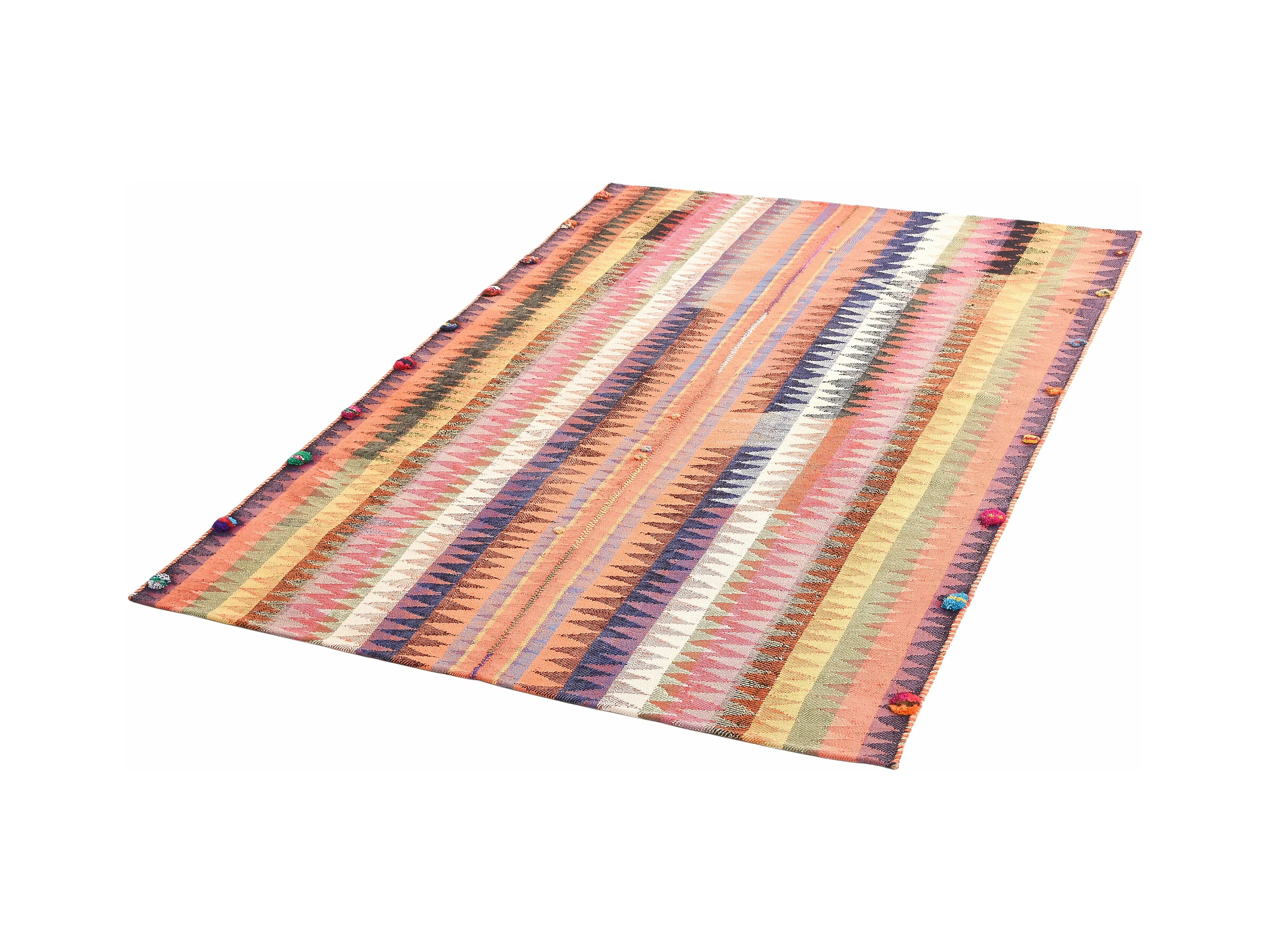 Flauschige Decke beige mit Streifenoptik und Bommeln 150 x 200 cm Kaweri