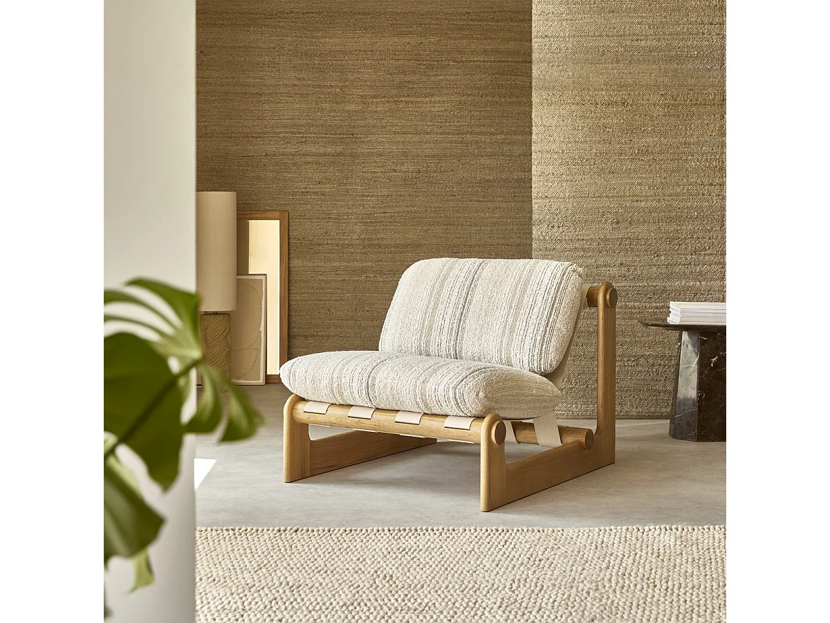 Sessel Woodnest mit massivem Eichenholzgestell und Leinenbezug ,1-Sitz
