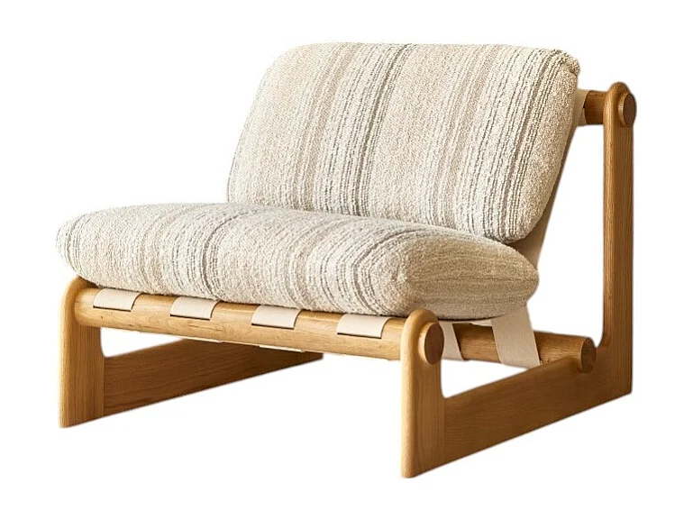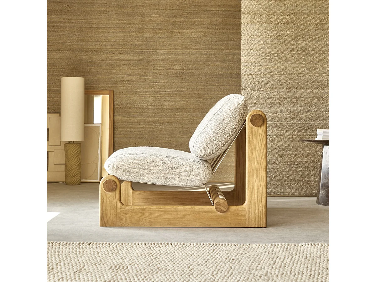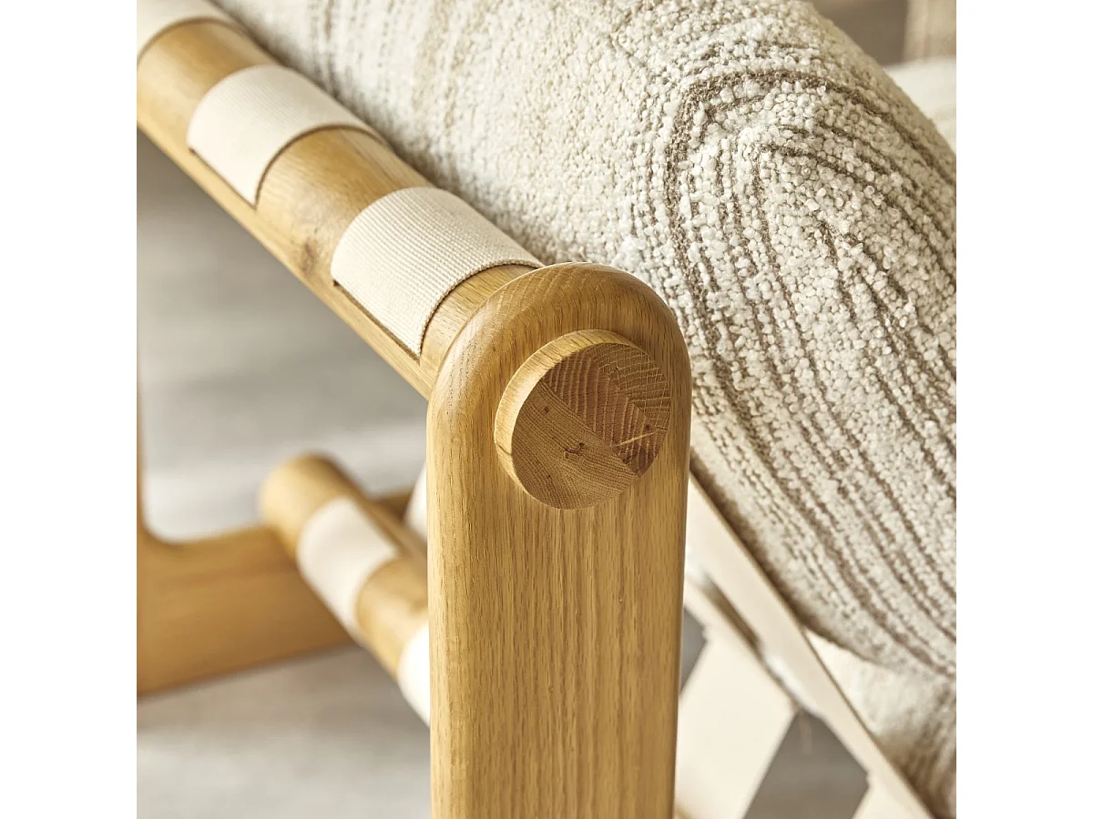 XL-Sessel aus massivem Eichenholz und beigem Stoff