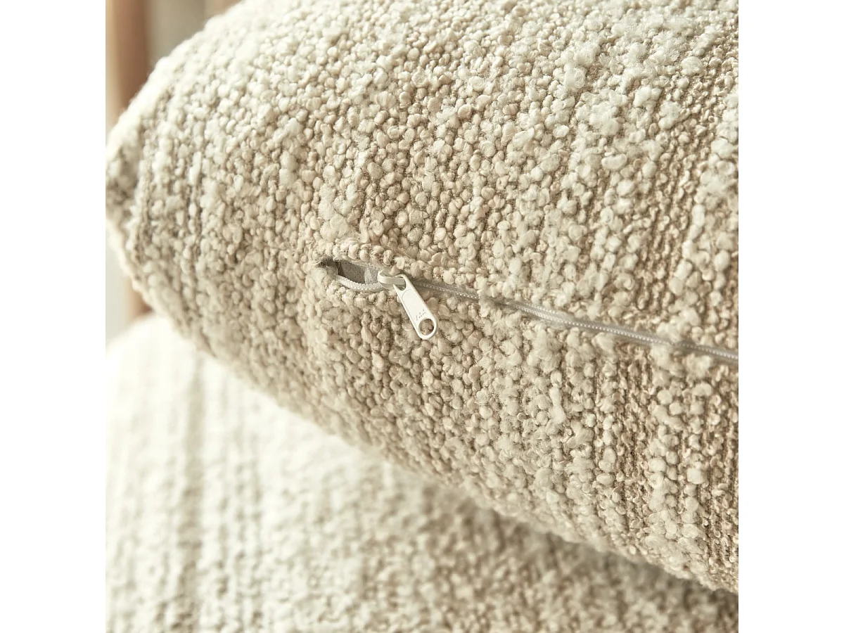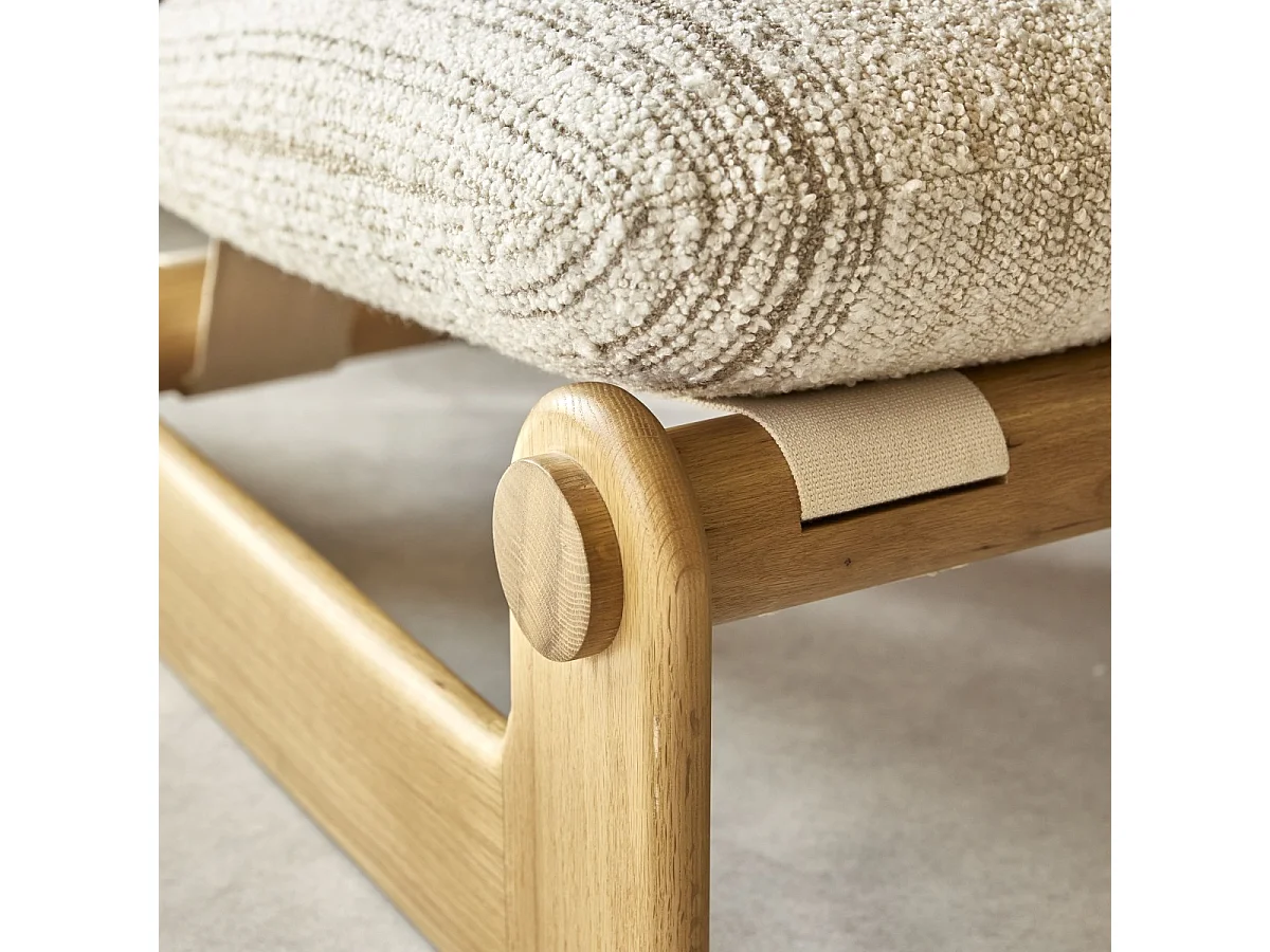 Sessel Bjorn mit massivem Eichenholzgestell und ecrufarbenem Stoffbezug, 1-sitzig