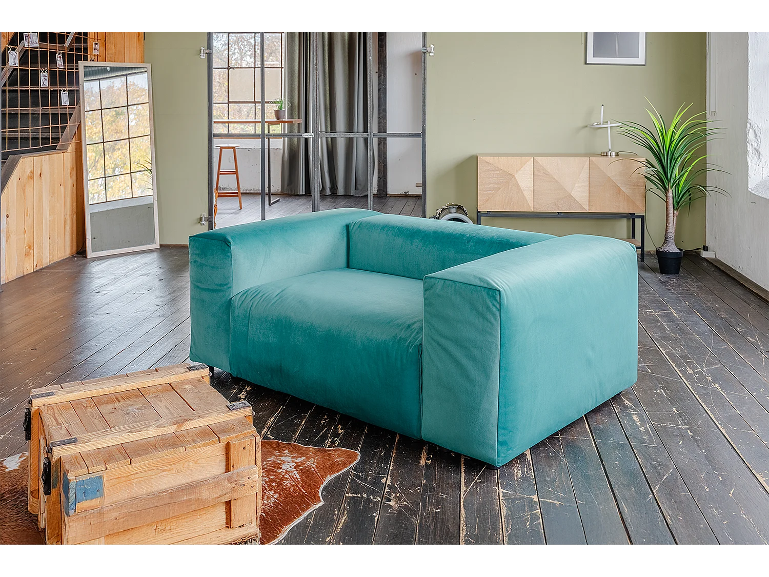 Sessel gemütlich Samt grün gesteppt oval Muschelform niedrige Rückenlehne Malung