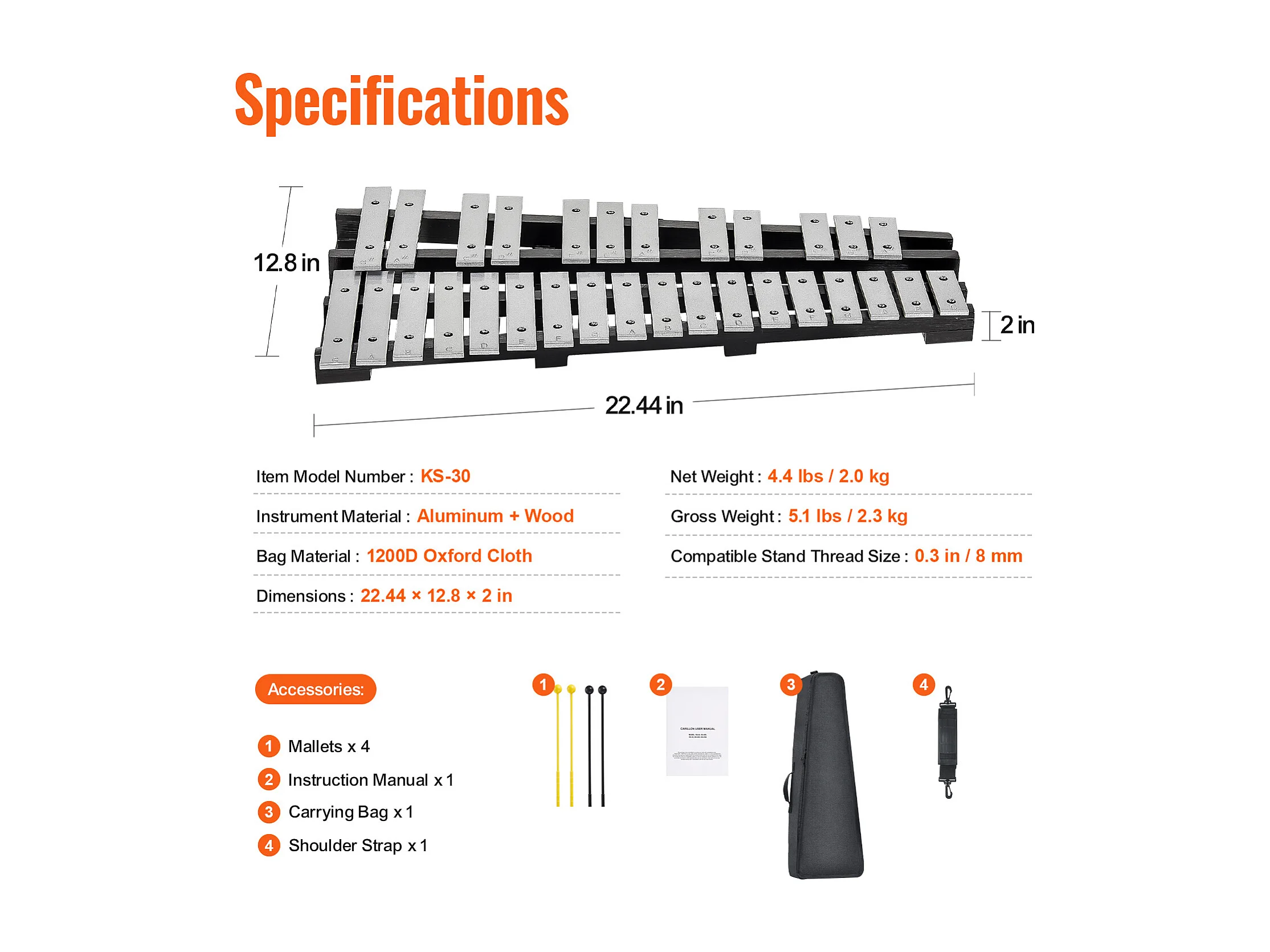 Xylophon Glockenspiel SucceBuy mit 30 Tönen, Einschließlich Schlägel, Sticks und Tasche, Vielseitiges Set für Erwachsene und Studenten