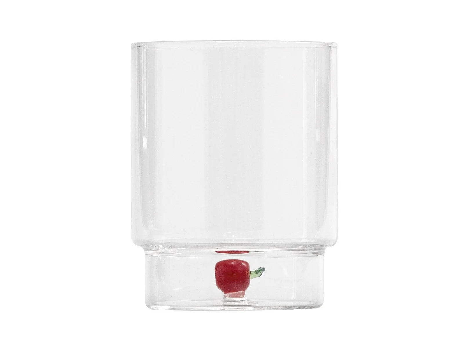 Zafferano Teca Frutta – Set mit 6 Gläsern aus Borosilikatglas mit Apfel – 35 cl Becher, doppelter Boden, handdekoriert, leicht waschbar